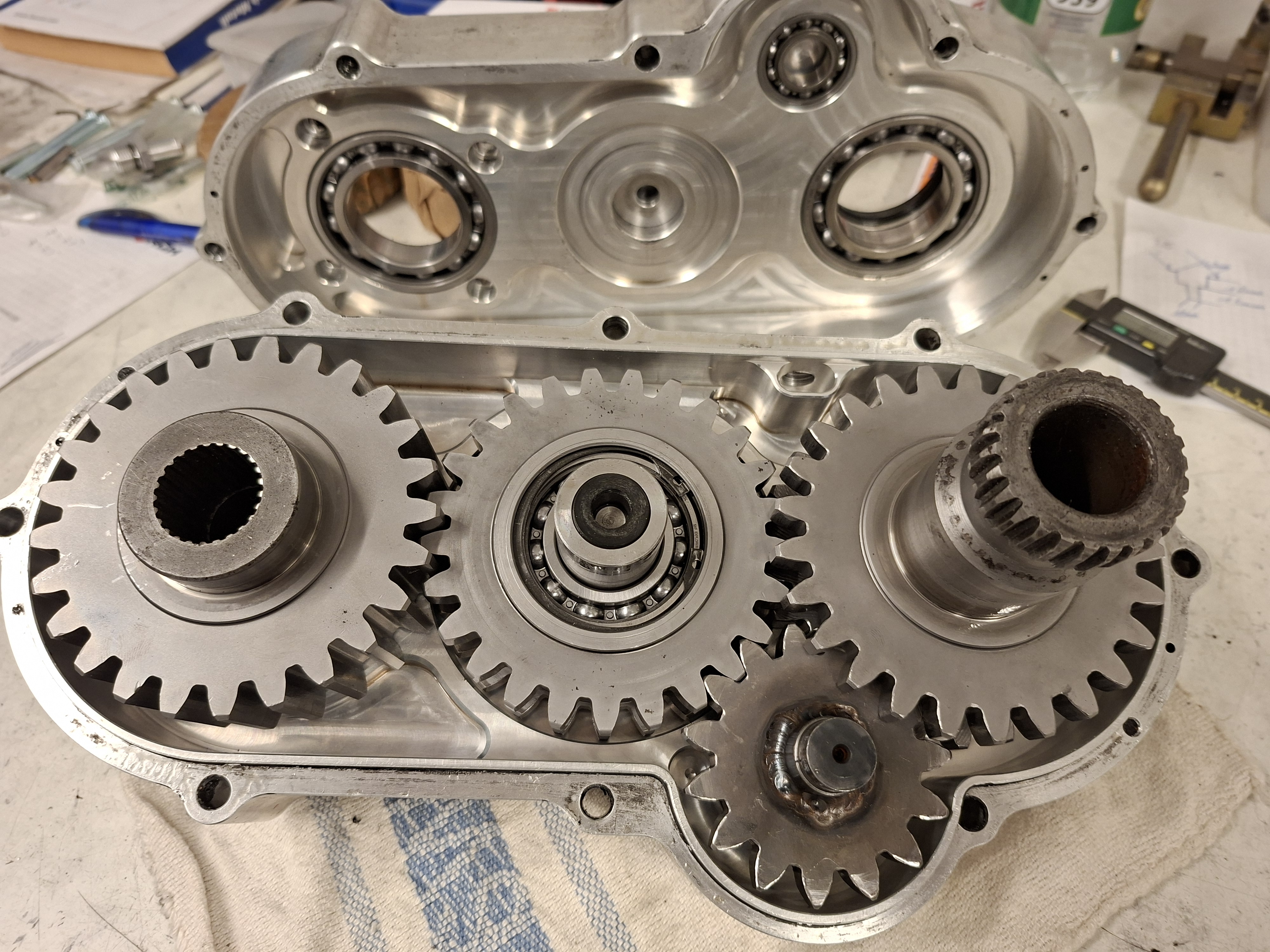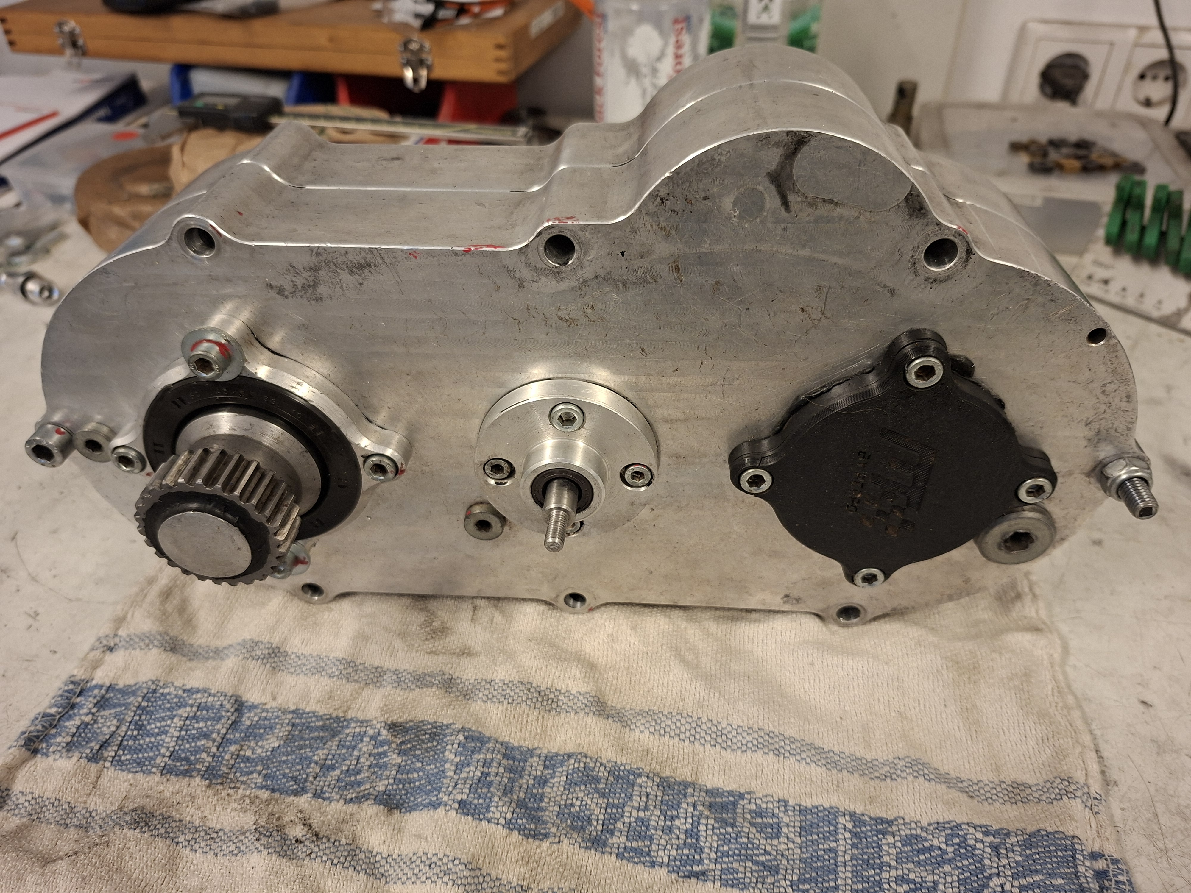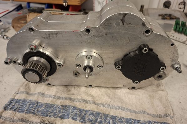 Zum Verkauf steht ein gebrauchter Getriebekasten mit Rückwärtsgang.