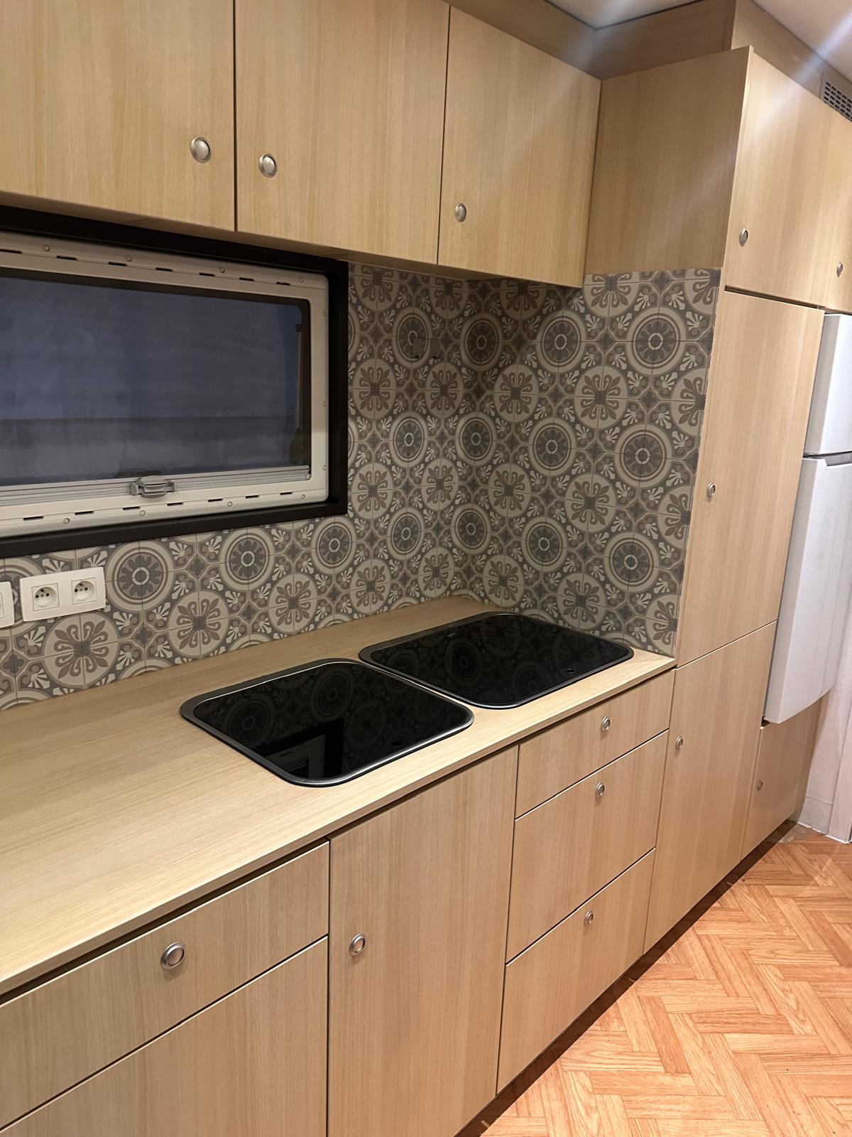 8 Schlafplätze, Dusche, WC, Küche, TV mit Sniper Sat Antenne, Tisch für 5-6 Personen.