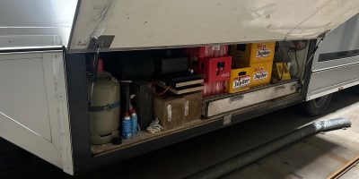 800L Frischwasser und ca 700L Altwasser, Warmwasserboiler auf Gas vorhanden.