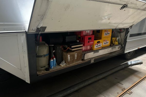 Stromversorgung ist vorhanden mit einem Stromaggregat über tag und Gel Batterien für die Nacht.