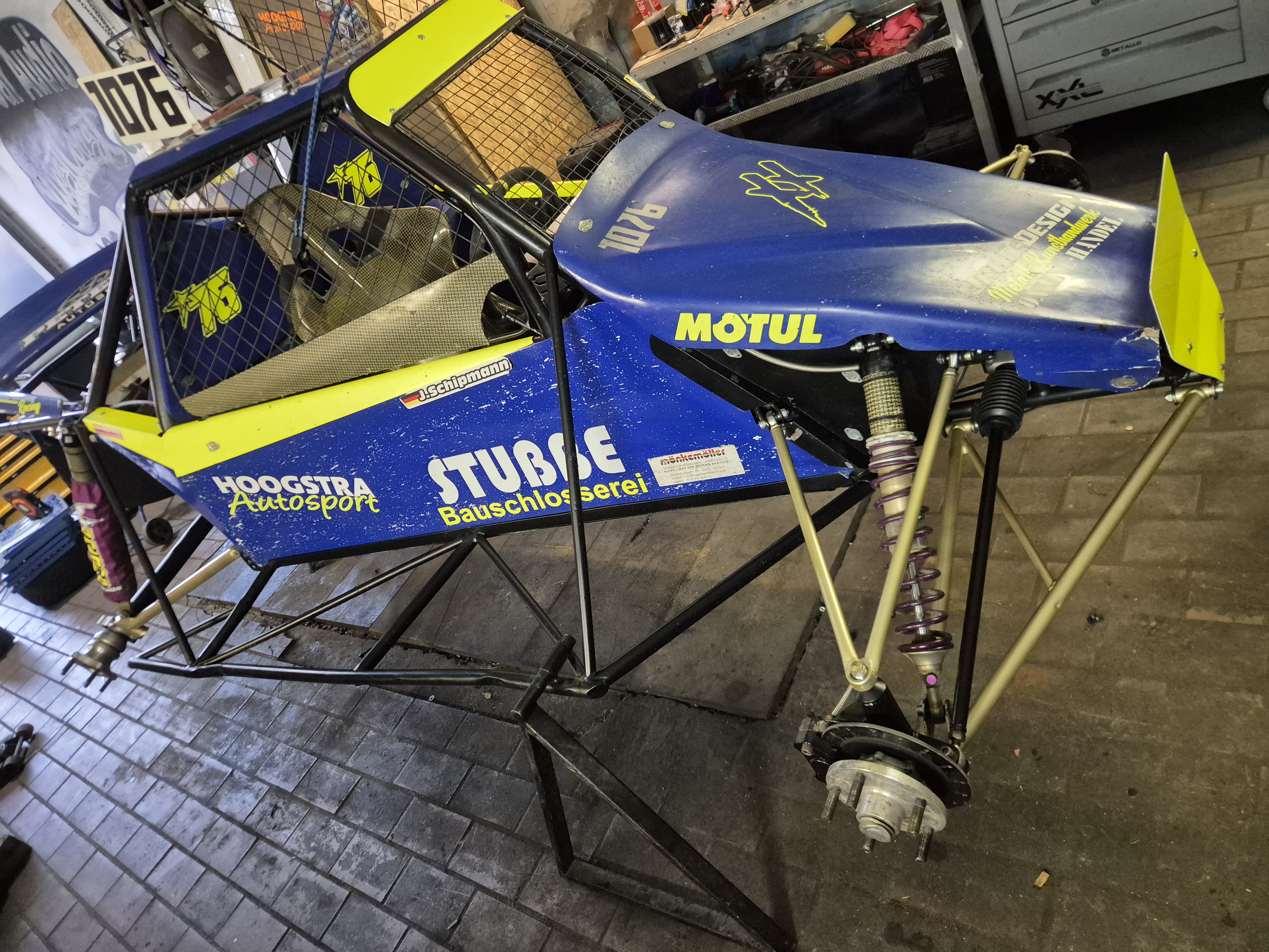 Das Auto wird komplett rennfertig verkauft rollend. hinten sind reifen mit beatlook felgen verbaut und vorne spurreifen mit schmalen Felgen
